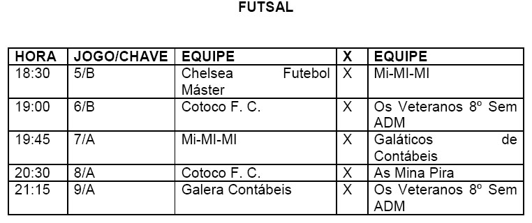 TABELA DE JOGOS