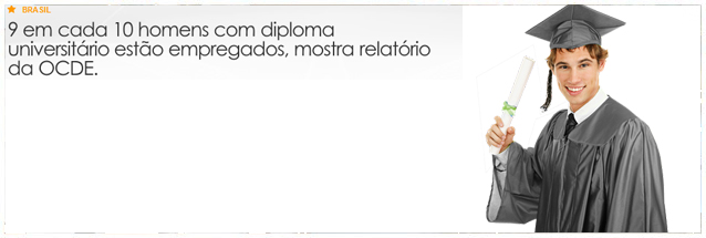 No Brasil, a correlação entre diploma universitário e emprego é alta: 9 em cada 10 homens com ensino superior entre 25 e 64 anos estão empregados. Somadas às mulheres, o índice é de 85,6%. Os dados são do relatório “Education at a Glance 2012″ (“Um Olhar sobre a Educação”), divulgado pela OCDE (Organização para a Cooperação e Desenvolvimento Econômico).